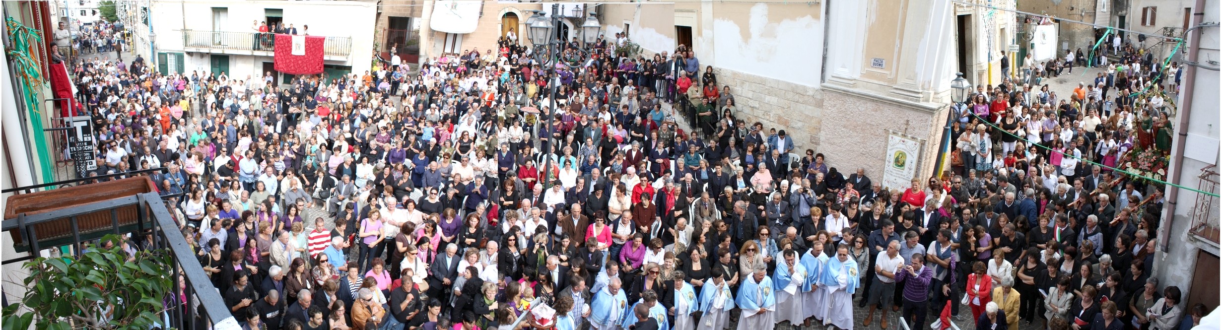 Piazza del Duomo ore 10 del 27.09.2009, piena di fedeli che assistono alla Santa Messa e al Panegirico - Scorrere verso destra |