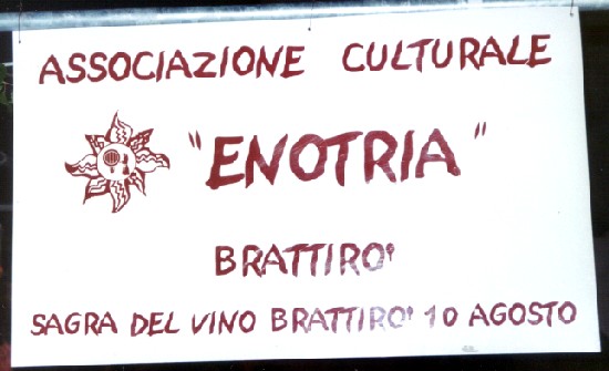 La Sagra del Vino di Brattirò è una festa che si svolge puntualmente la sera del 10 agosto di ogni anno ormai da quasi 30 anni; scopo della manifestazione è far conoscere le ottime proprietà organolettiche del Vino di produzione locale. I vigneti di Brattirò infatti sono situati su due terrazze ad una altitudine di 300 m digradanti verso il mare di Tropea e Capo Vaticano. Questa configurazione geografica consente un'ottima ventilazione e disposizione al sole degli antichi vigneti che sommata al lavoro metodico e paziente dell'uomo ha come risultato la produzione di un vino genuino e pregiato. La sagra viene gestita da un'associazione appositamente costituita che organizza la festa con la collaborazione fattiva ed operosa di tutto il paese. Durante la festa, che è approntata per tutto un anno iniziando dalla vendemmia in settembre, vengono offerti nelle taverne e negli stand predisposti il vino e i piatti tipici della tradizionale cucina contadina, la serata si conclude in grande allegria con balli in piazza. |