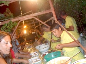 Il Prodotto La produzione del fagiolo nella tradizione cariese e' frutto delle coltivazioni fatte con grandi sacrifici nel terreno particolare (la Pija terra marrone finissima e fertile) sull'altipiano del Poro dai contadini del posto. La Cottura Questa procedura rappresenta il modo tradizionale di cucinare la Sujaca (- SUJACA 'NTA PIGNATA ) che si gusta nella sagra. La PIGNATA è un recipiente particolare di terra cotta con manici nella quale si cucina questo il legume. Per cuocere la Sujaca alla "cariota" bisogna riempire di fagioli secchi la pignata fino a circa metà della sua capienza, poi si riempie d'acqua la pignata fino al suo collo e si fa bollire a fuoco lento (legna o carbone), cercando di evitare che l' acqua fuoriesca dal recipiente. Il tempo di cottura è di circa 3 ore, man mano che l'acqua si asciuga per conseguenza della bollitura , bisogna aggiungere della acqua calda che, solitamente , si trova in una pignata piu' piccola posta a fianco, a metà cottura aggiungere il sale; si serve calda e condita al piatto con olio extravergine di oliva degli oliveti della zona, a proprio gusto si può spolverare del peperoncino seccato in forno. Questa procedura in uso ancora oggi, per millenni e fino a pochi anni addietro ha consentito agli abitanti del Poro il principale approvvigionamento di proteine dal mondo vegetale in carenza di quelle animali, in modo naturale e genuino; garantendo la sopravvivenza in salute di intere generazioni di uomini. La bontà di questo tipo di alimentazione è in uso ancora anche se con meno frequenza, ma con lo stesso rito, che poi viene riproposto a popolazioni di altri posti, appunto la sera del 6 Agosto di ogni anno. La Festa La sagra viene organizzata da i giovani di Caria che ogni anno si impegnano molto per la realizzazione di questa manifestazione. La Sujaca che si gusta in questa festa viene cucinata tradizionalmente dalle famiglie cariesi nella giornata del 6 agosto, a sua guarnizione si possono gustare altre specialità tipo: melanzane alla griglia , pane fatto in casa, olive, 'nduja, pipirej, anguria, vijozzu panino e salsiccia curuji, tutto accompagnato da un bel bicchiere di vino, tutti prodotti localmente, insomma una bella abbuffata, la serata viene allietata dal ballo dei giganti e da un gruppo folk con i tipici costumi calabresi, infine si chiude con la tradizionale " ballata du camejuzzu i focu ", insomma se volete trascorrere una serata diversa dalla solita routine estiva vi aspettiamo il 6 agosto a Caria nella cornice del castello del filosofo Pasquale Galluppi, per la Sagra da Sujaca. BUON APPETITO DA CARIA IL PAESE DA SUJACA VI ASPETTIAMO COME SEMPRE OGNI 6 di AGOSTO. Caria Agosto 2007 Francesco Pugliese |