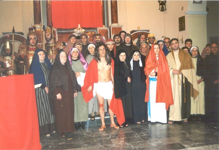 GUARDIE DEL SINEDRIO - Mario Loiacono - Francesco Di Bella - Michele Naso PONZIO PILATO - Don Sergio Meligrana SERVO DI PILATO - Domenico Fusca. SOLDATI ROMANI - Rocco Pietropaolo - Emanuele Binetti - Giuseppe Bagnato - Gerolamo Naso. MARIA SUA MADRE - Maria Calello MARIA MADDALENA - Domenica Molino MARIA DI CLEOFA - Rosaria Mollo MARIA DI GIACOMO - Rosaria Broso PIE DONNE - Maria Rosa Rizzo - Anna Cuturello - Rosaria Floccari - Domenica Nicolini - Rosa Pugliese LA VERONICA - Elisabetta Bagnato IL CIRENEO - Domenico Aiello. |