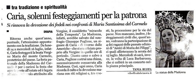 Drapia - La Madonna del Carmine a Caria - di Tania Ruffa |